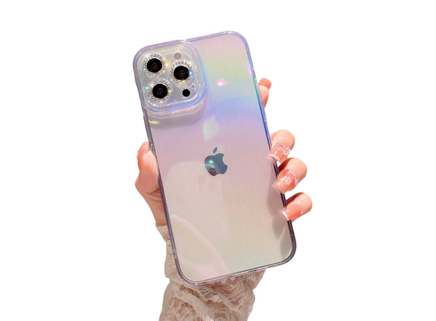 anyco iPhone Case Blue Colorful Gradient Glitter Diamond Lens Camera Protection Soft Cover