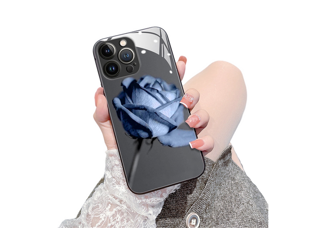 anyco iPhone Case Blue Vintage Rose Flowers Glass Tempered Bumper Cover