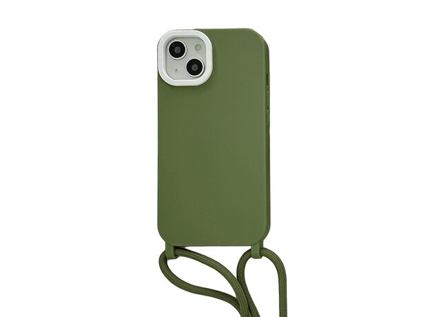 anyco iPhone Case Green Crossbody Necklace Lanyard Rope Cord Shockproof Soft Liquid Silicon Back Cover