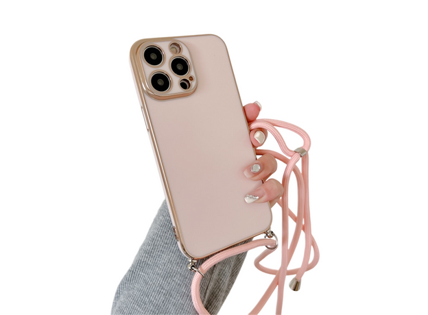 anyco iPhone Case Pink Necklace Lanyard Silicon Phone Cord Strap Cover