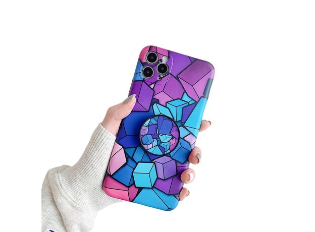 anyco iPhone Case Purple Colorful Marble Holder Grip Kickstand Soft Silicon Phone Back Cover