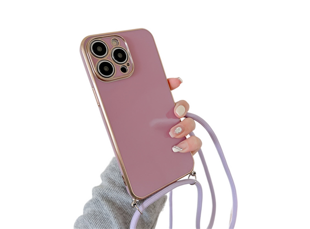 anyco iPhone Case Rose Pink Necklace Lanyard Silicon Phone Cord Strap Cover