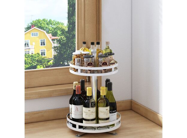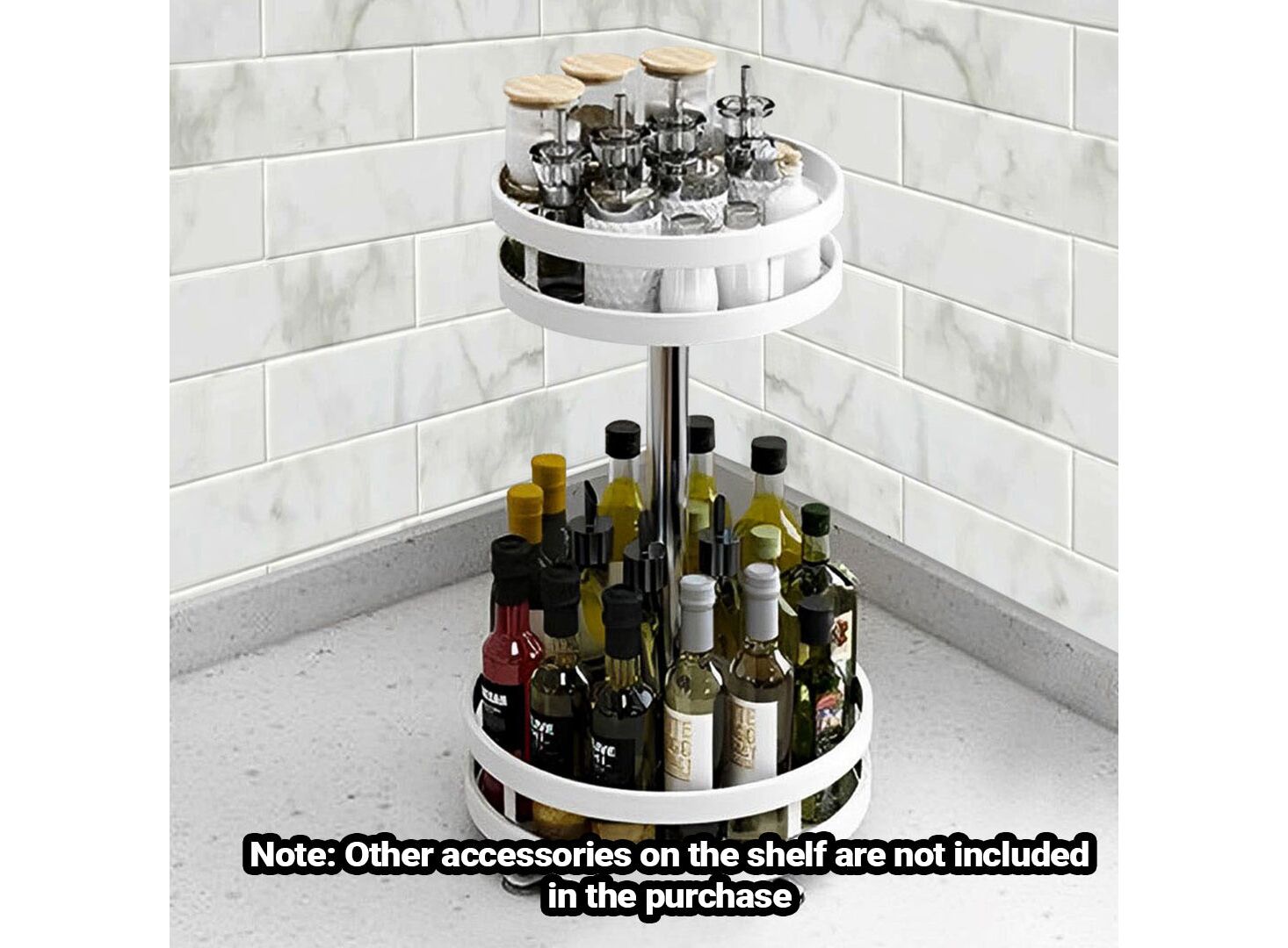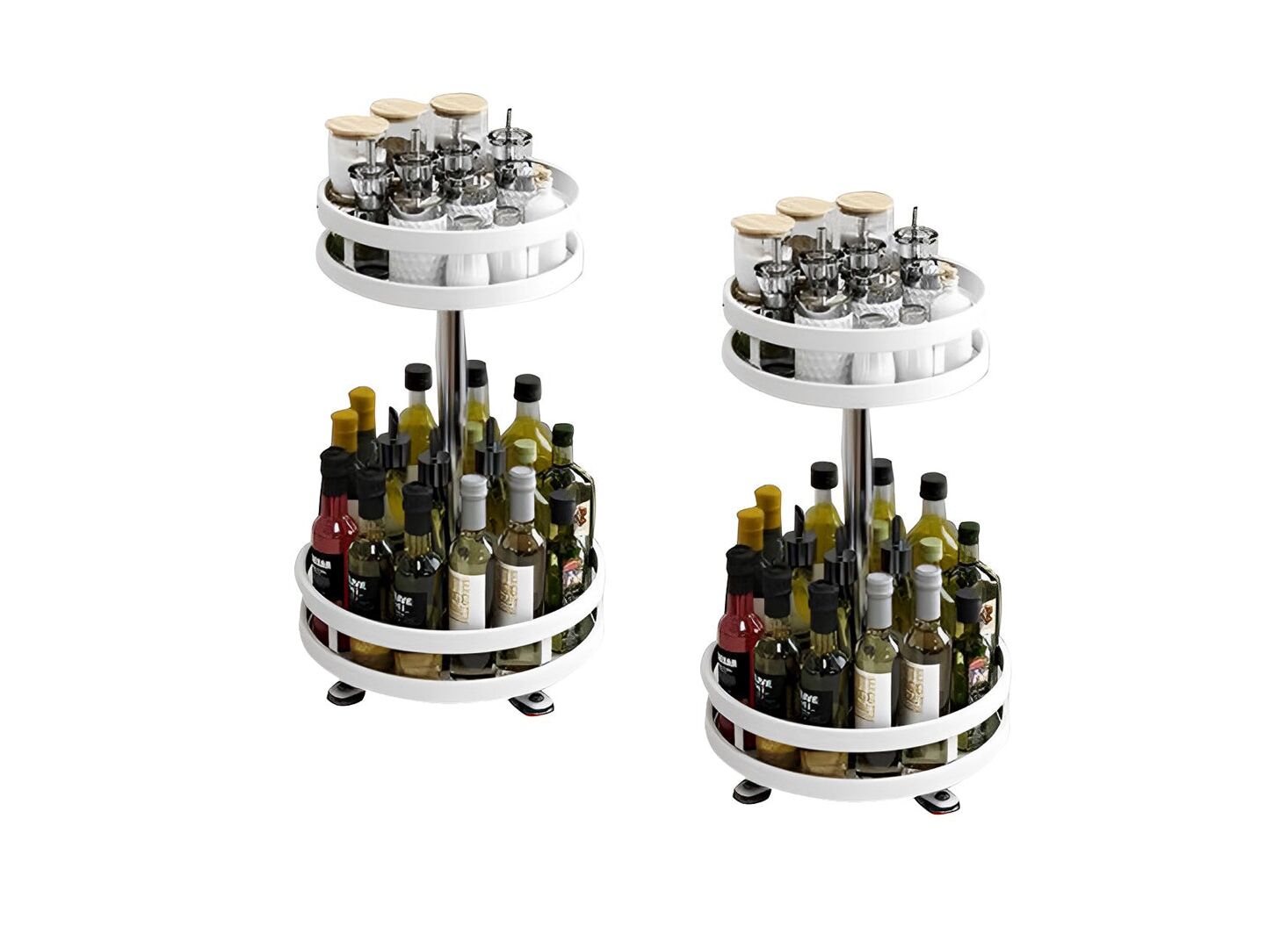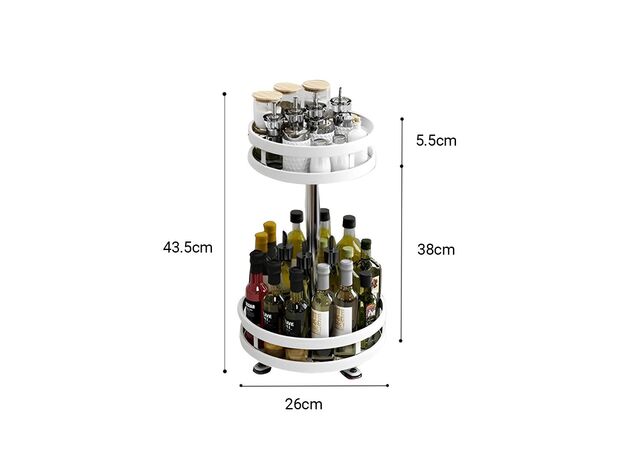 SOGA 2X 2 Tier Steel White Round Rotating Multi-Function Kitchen Portable Storage Spice Seasoning Kitchen Countertop Organiser Shelf