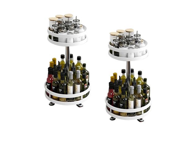 - 2X SOGA 2 Tier White Round Kitchen Spice Rack