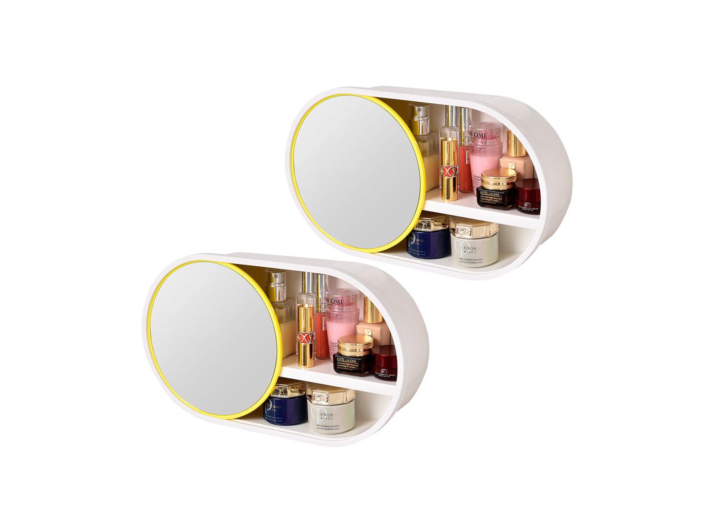 - 2X SOGA 39cm Oval Wall-Mounted Mirror Storage Box