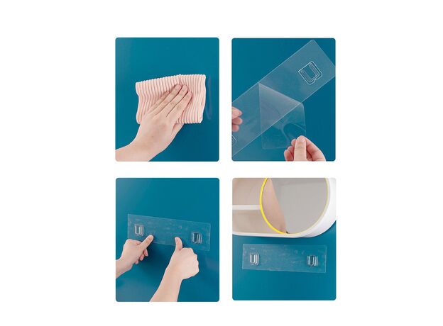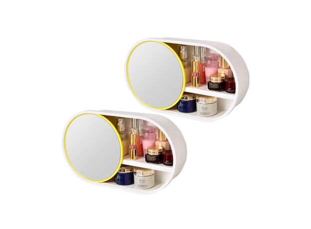 SOGA 2X 39cm Oval Wall-Mounted Mirror Storage Box Vanity Mirror Rack Bathroom Adhesive Shelf Home Organiser Deco