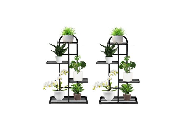 SOGA 2X 4 Tier 5 Pots Black Metal Plant Stand Flowerpot Display Shelf Rack Indoor Home Office Decor