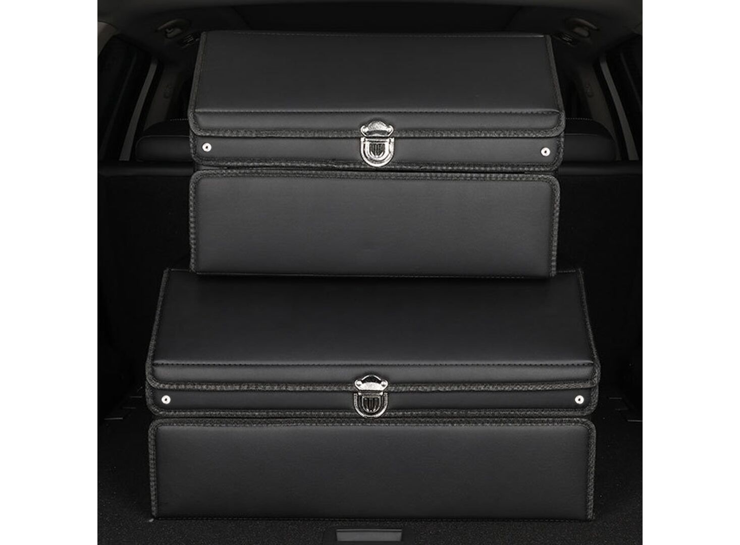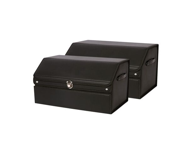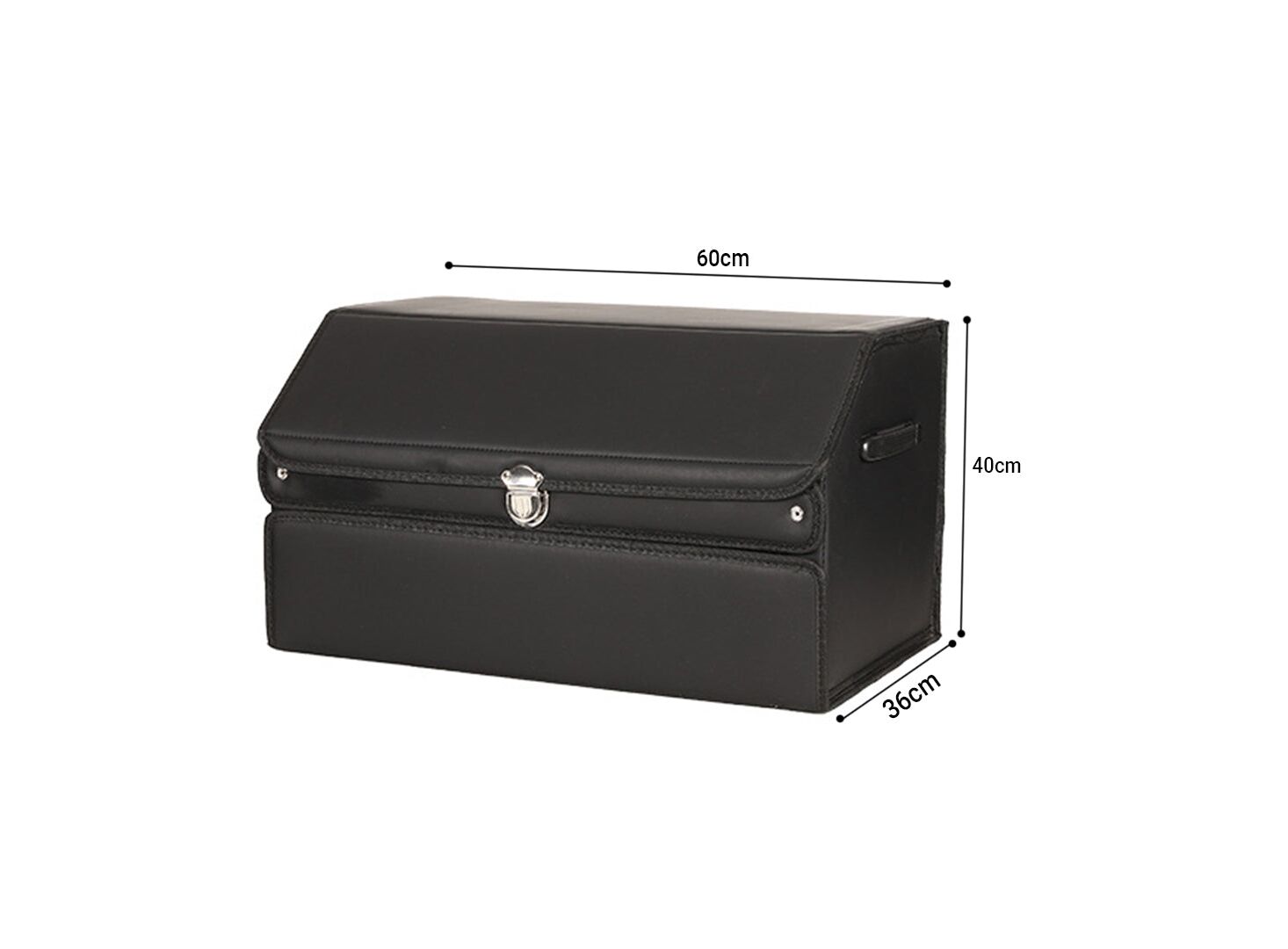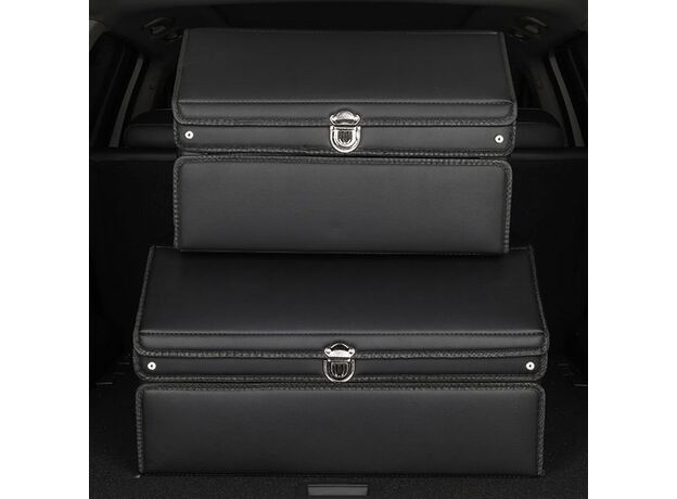 - 2X SOGA 60cm Black Car Leather Boot Organizer Box with Lock