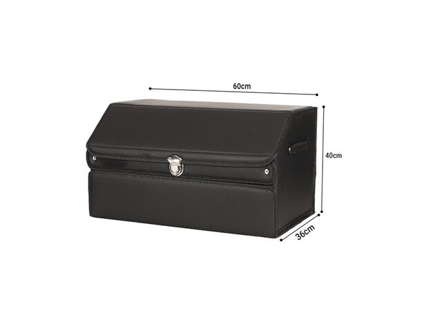 SOGA 2X 60cm Leather Car Boot Collapsible Foldable Trunk Cargo Organizer Portable Storage Box with Lock Black
