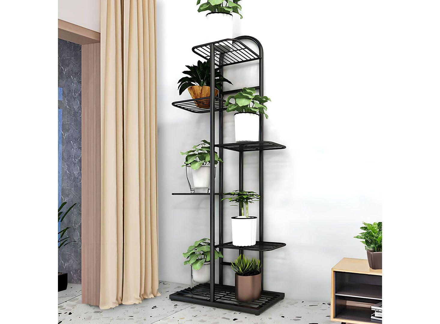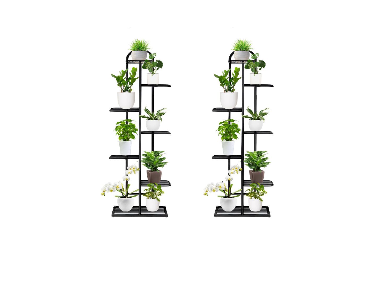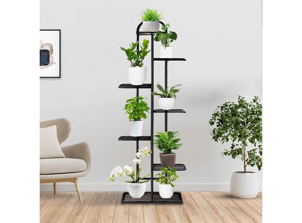 SOGA 2X 7 Tier 8 Pots Black Metal Plant Stand Flowerpot Display Shelf Rack Indoor Home Office Decor