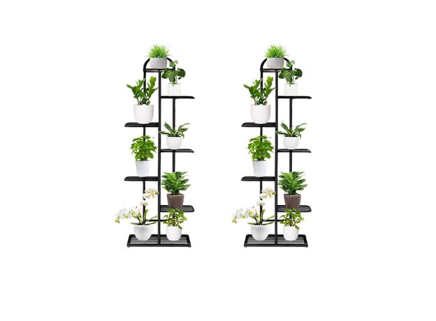 - 2X SOGA 7 Tier 8 Pots Black Metal Plant Rack