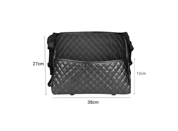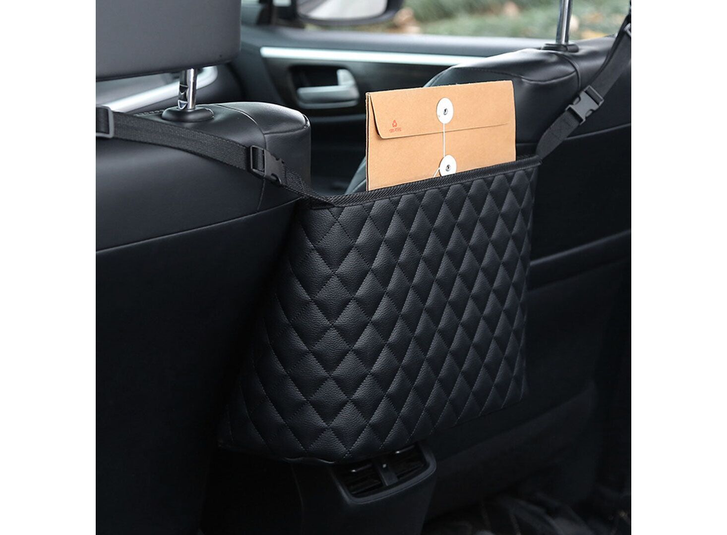 - SOGA Car Storage Bag is ideal for keeping your items tidy and organized. It completely covers the space between the first two seats, allowing you to store extra. Excellent additional storage can store many items. Not only for your bags and purses but also for your favorite accessories!
