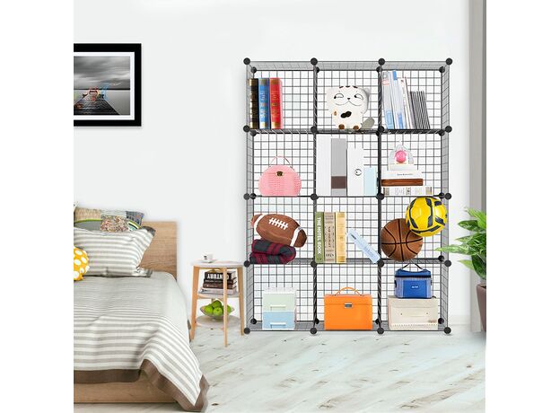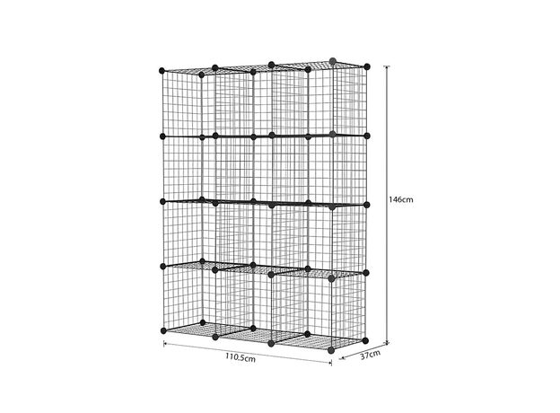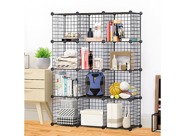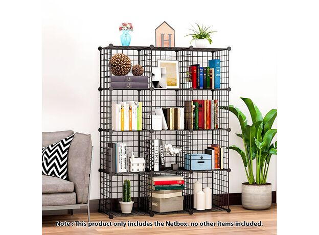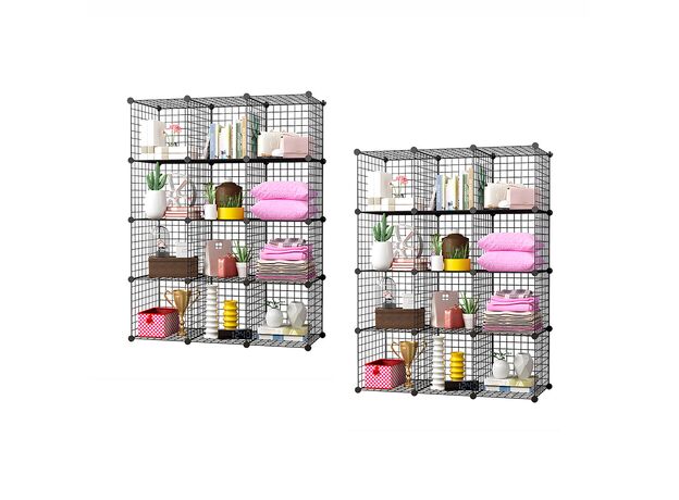 SOGA 2X Black Portable 12-Cube Storage Organiser Foldable DIY Modular Grid Space Saving Shelf
