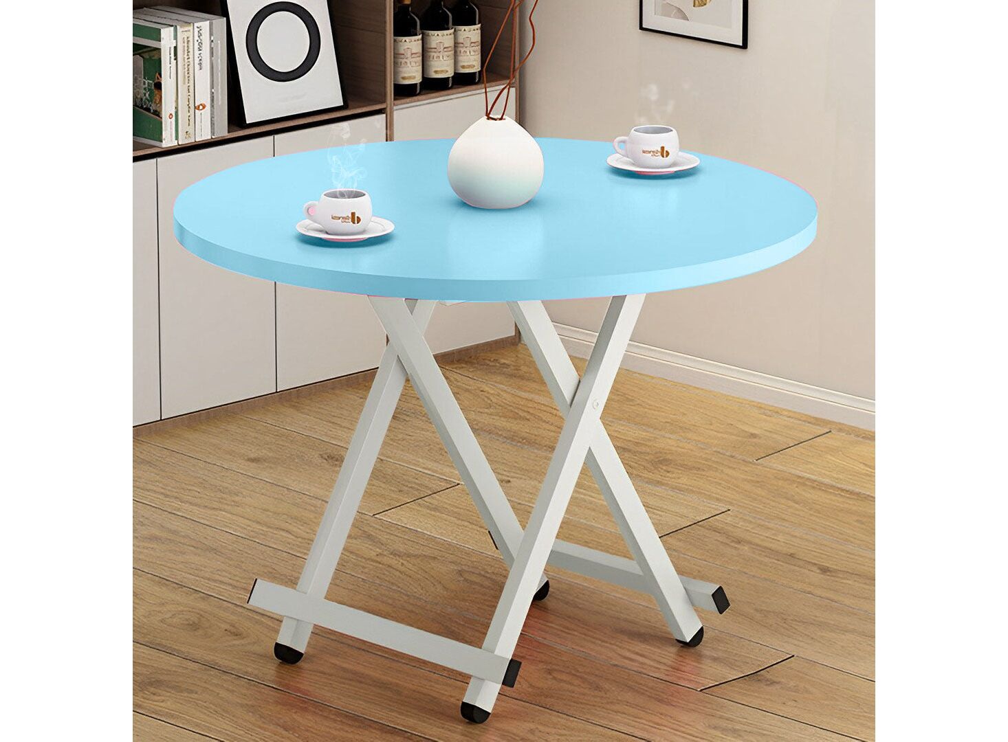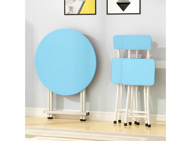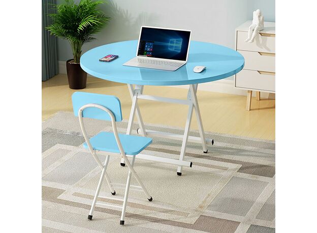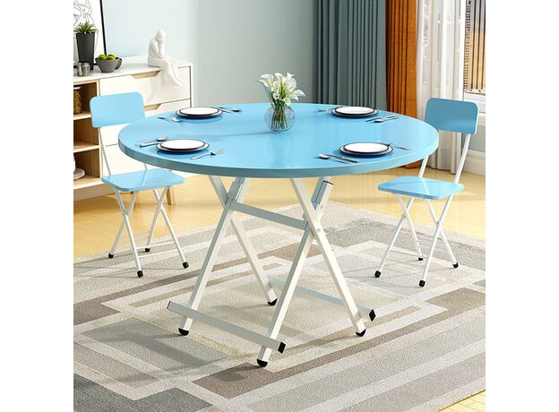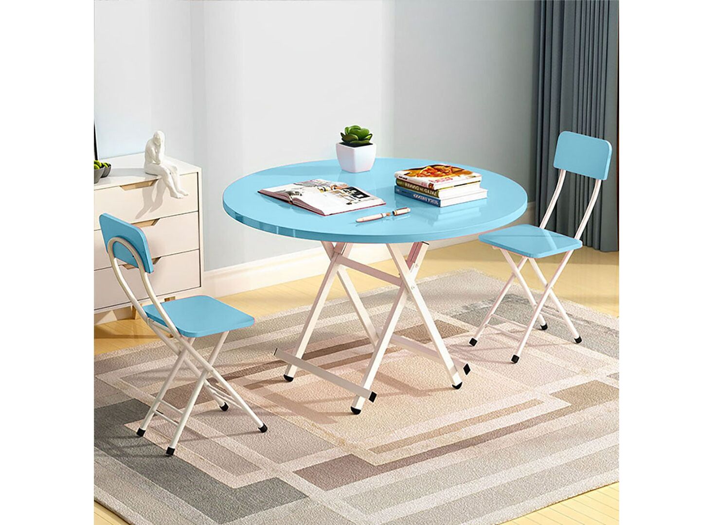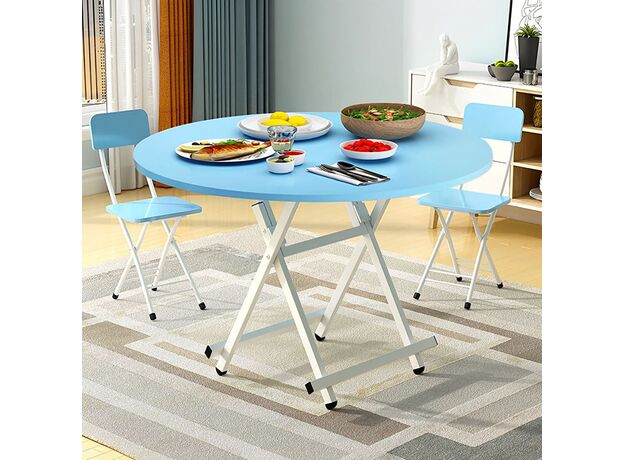 SOGA 2X Blue Dining Table Portable Round Surface Space Saving Folding Desk Home Decor