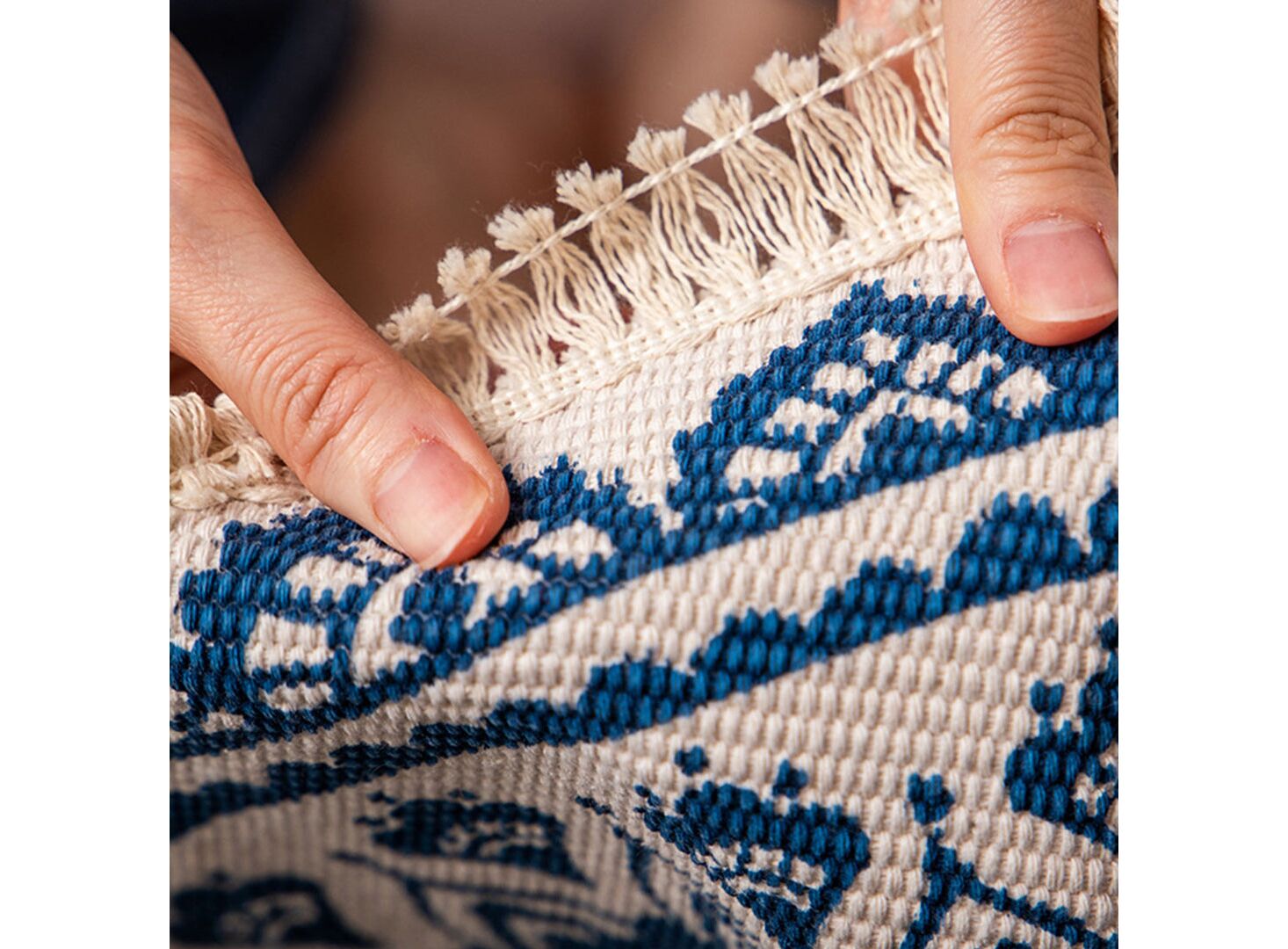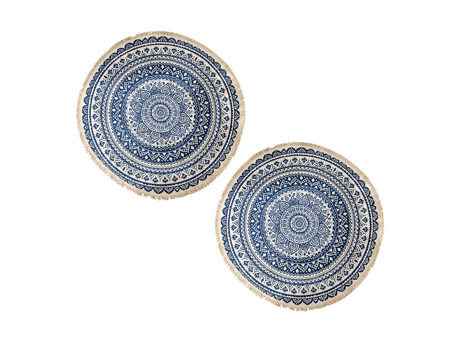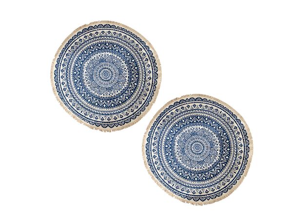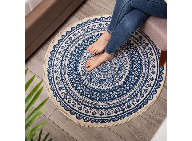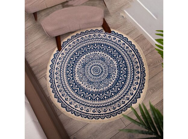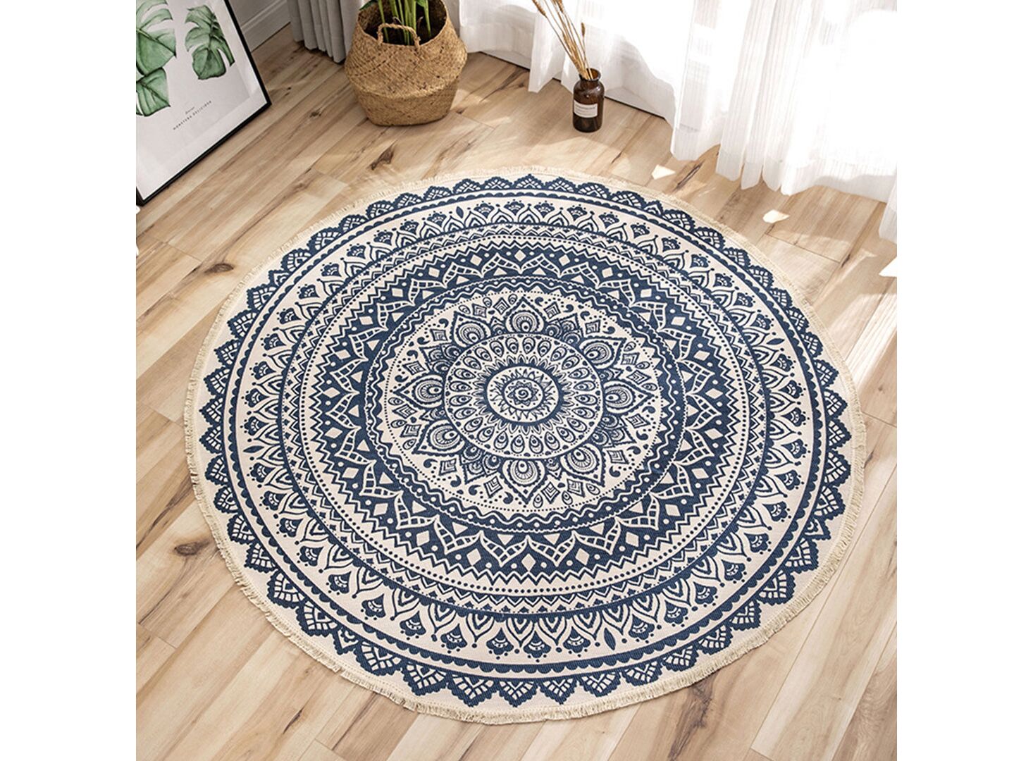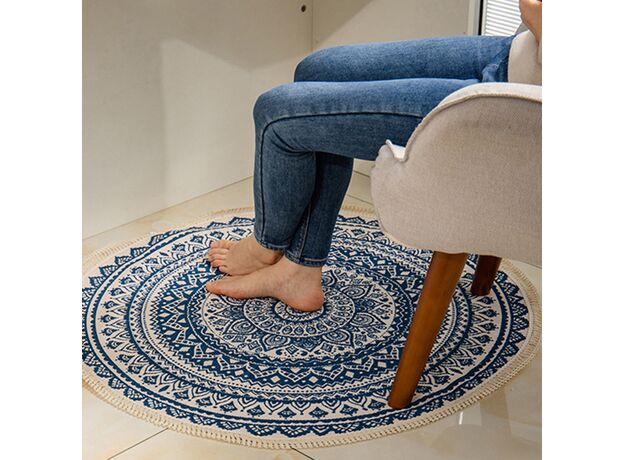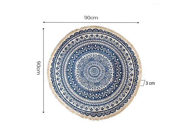 SOGA 2X Dark Blue Carpet Soft Linen Bohemian Non-Slip Floor Retro Minimalist Round Rug Home Decor with Tassels