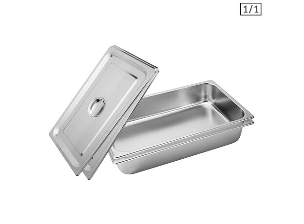 SOGA 2X Gastronorm GN Pan Full Size 1/1 GN Pan 10cm Deep Stainless Steel Tray With Lid