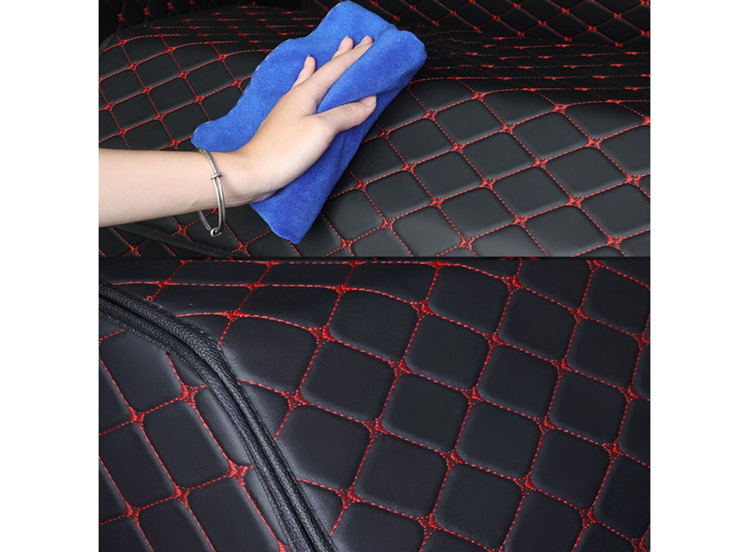 - The exterior is made of high-quality leather with a diamond stitch pattern combine with a non-woven fabric interior