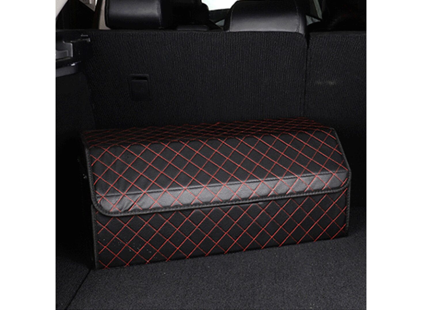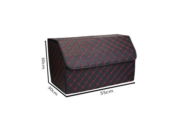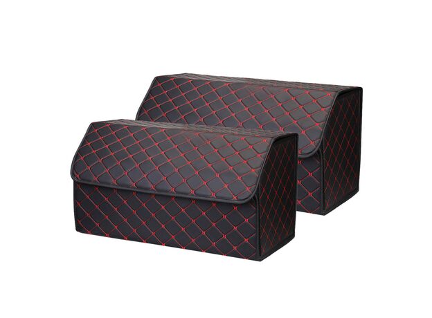 SOGA 2X Leather Car Boot Collapsible Foldable Trunk Cargo Organizer Portable Storage Box Black/Red Stitch Large
