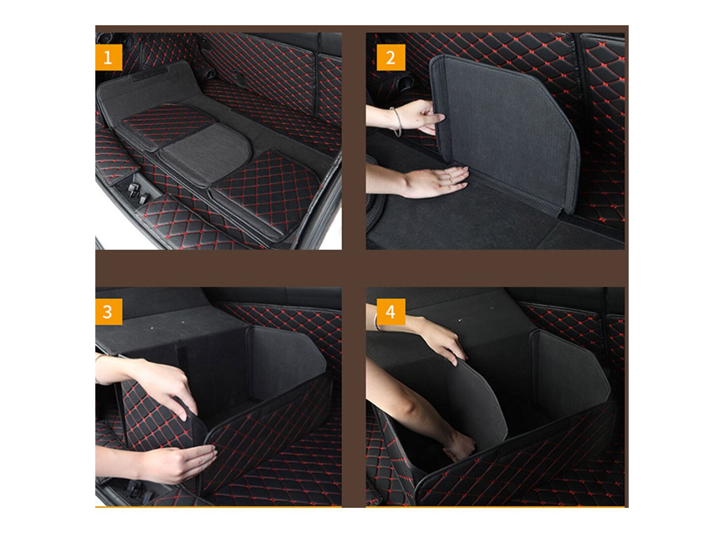 - This car or home organizer is portable, collapsible, foldable with space-saving removable divider partition pieces, and is easy to install.