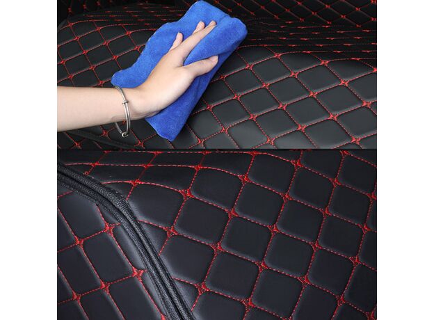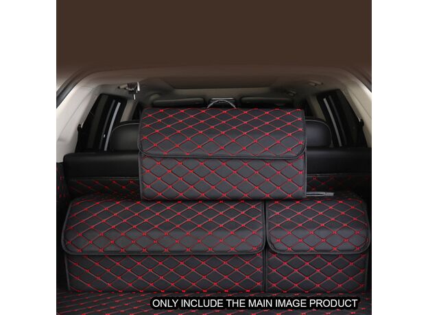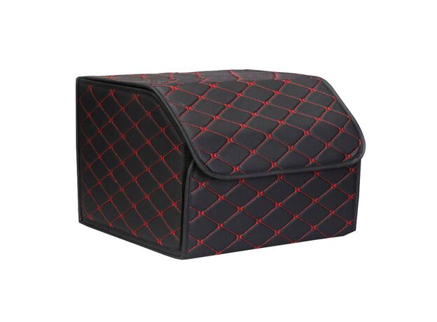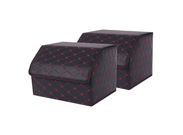 SOGA 2X Leather Car Boot Collapsible Foldable Trunk Cargo Organizer Portable Storage Box Black/Red Stitch Medium