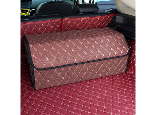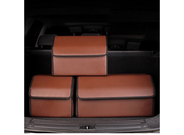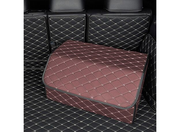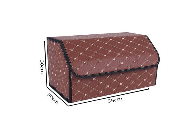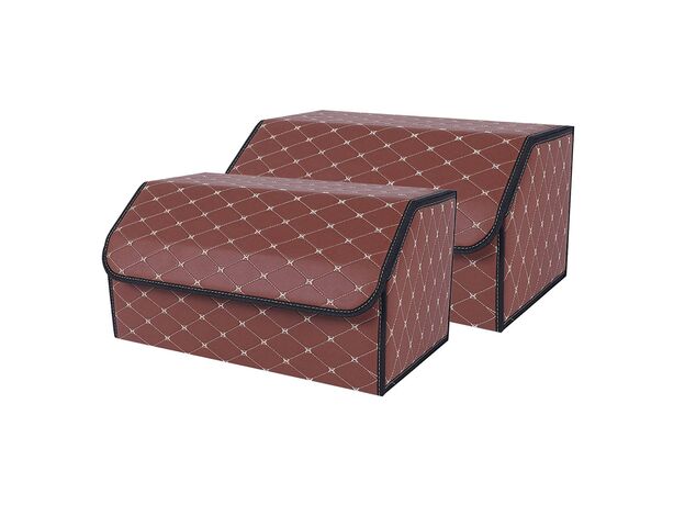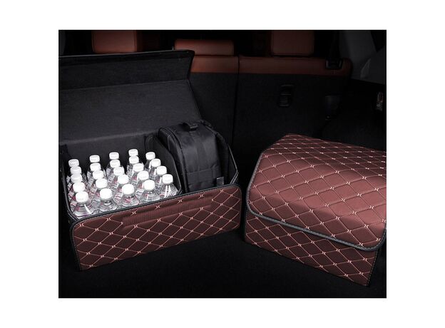 SOGA 2X Leather Car Boot Collapsible Foldable Trunk Cargo Organizer Portable Storage Box Coffee/Gold Stitch Large