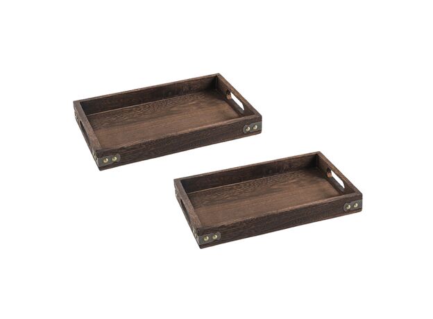 - 2X SOGA Medium Walnut Rectangle Wooden Tray