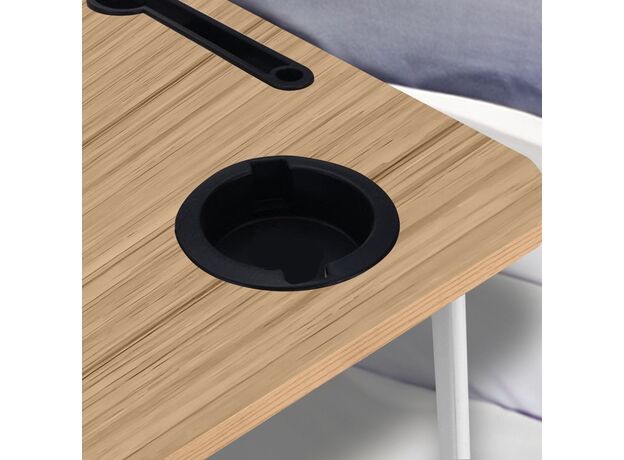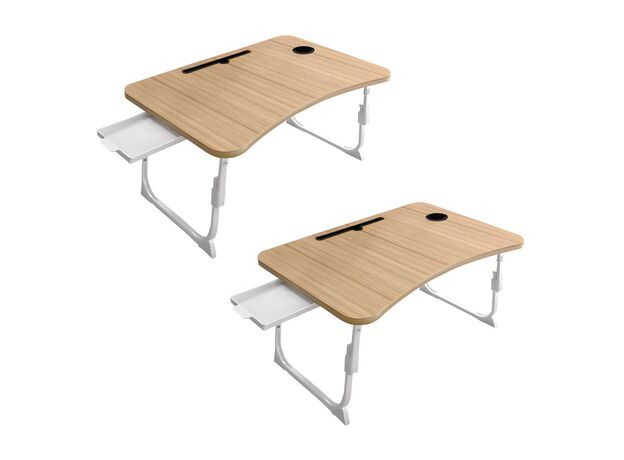 SOGA 2X Oak Portable Bed Table Adjustable Folding Mini Desk Stand With Cup-Holder Home Decor