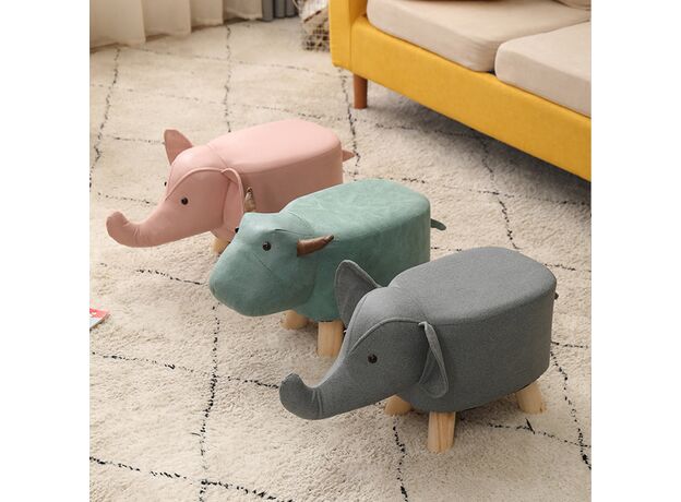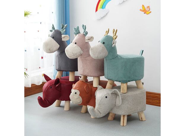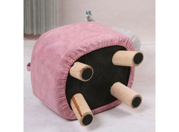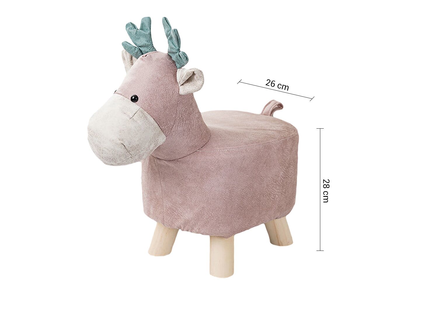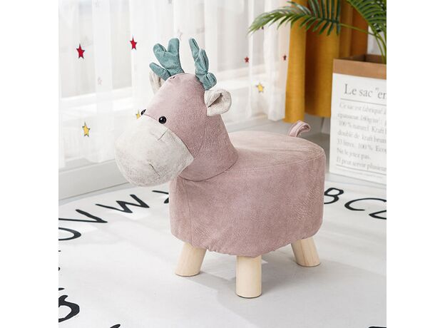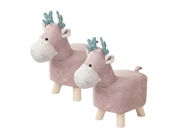 SOGA 2X Pink Children Bench Deer Character Round Ottoman Stool Soft Small Comfy Seat Home Decor
