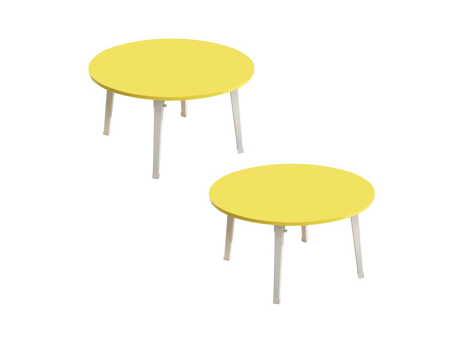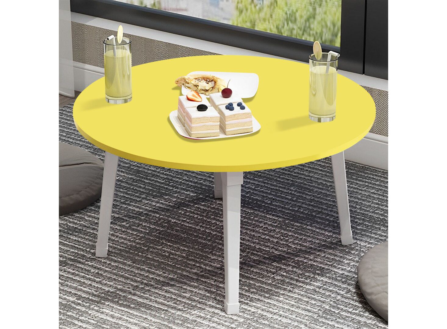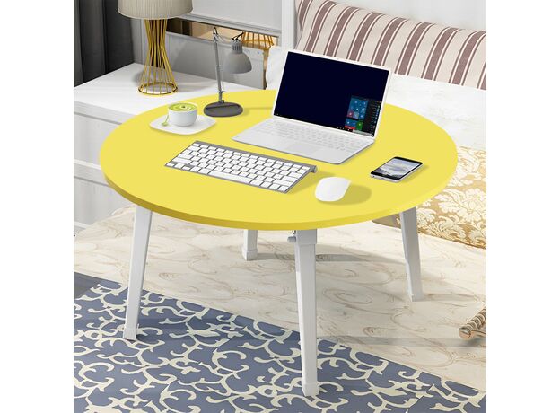 SOGA 2X Yellow Portable Floor Table Small Round Space-Saving Mini Desk Home Decor