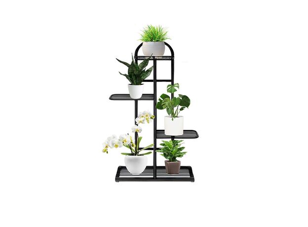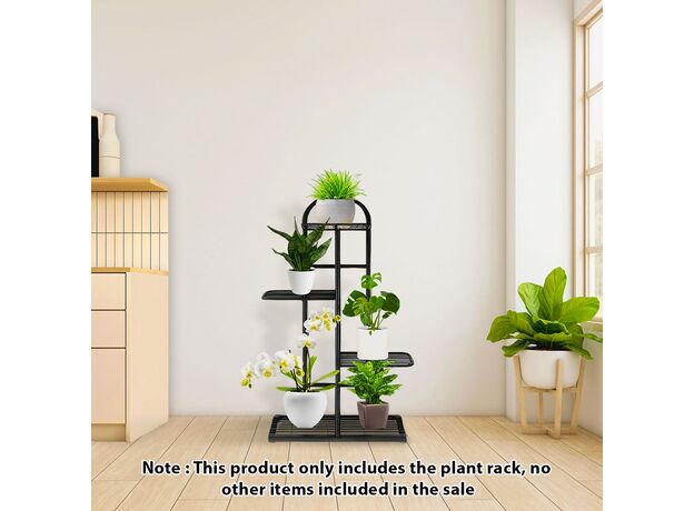SOGA 4 Tier 5 Pots Black Metal Plant Stand Flowerpot Display Shelf Rack Indoor Home Office Decor