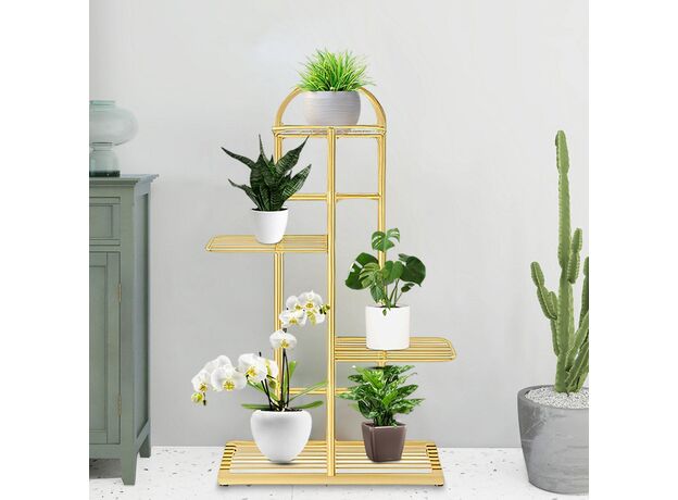 SOGA 4 Tier 5 Pots Gold Metal Plant Stand Flowerpot Display Shelf Rack Indoor Home Office Decor