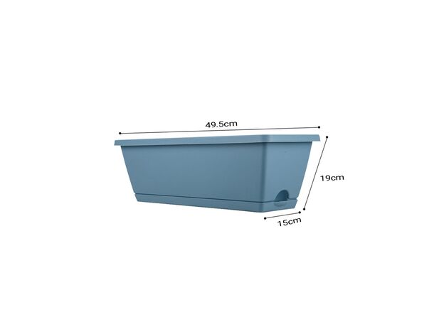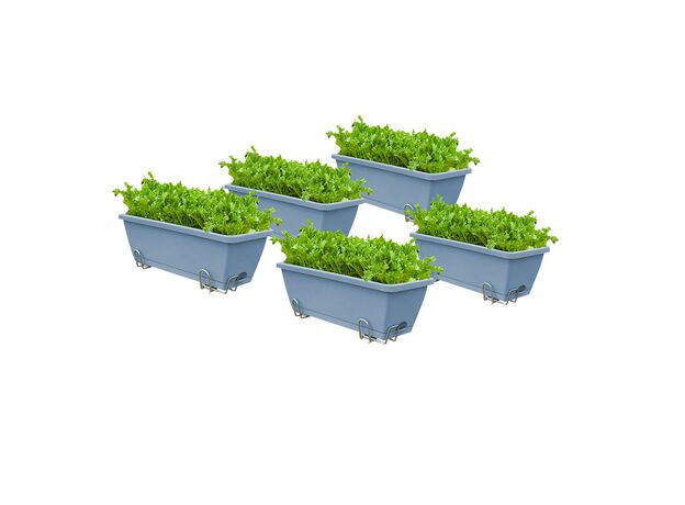 SOGA 49.5cm Blue Rectangular Planter Vegetable Herb Flower Outdoor Plastic Box with Holder Balcony Garden Decor Set of 5