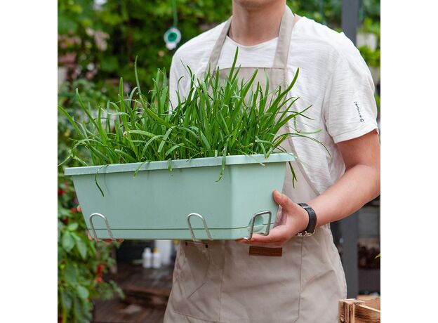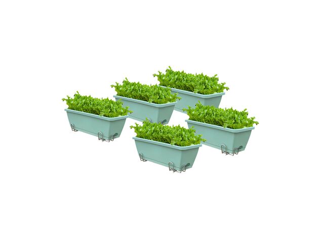 SOGA 49.5cm Green Rectangular Planter Vegetable Herb Flower Outdoor Plastic Box with Holder Balcony Garden Decor Set of 5