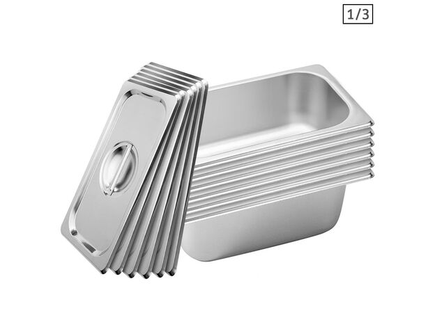 SOGA 6X Gastronorm GN Pan Full Size 1/3 GN Pan 6.5 cm Deep Stainless Steel Tray with Lid