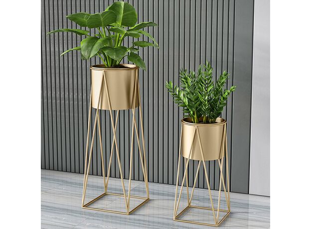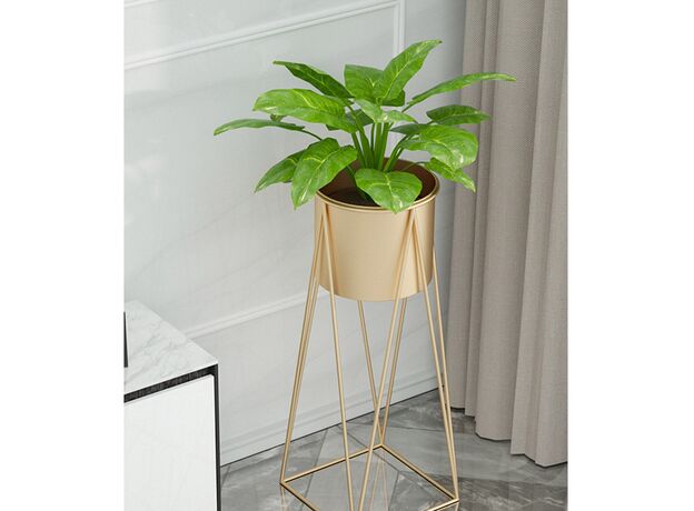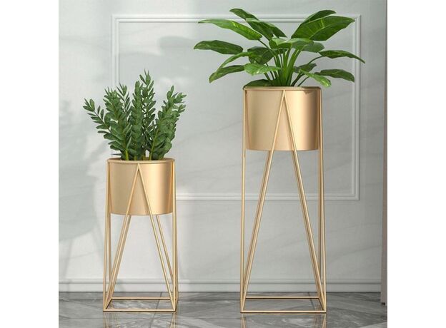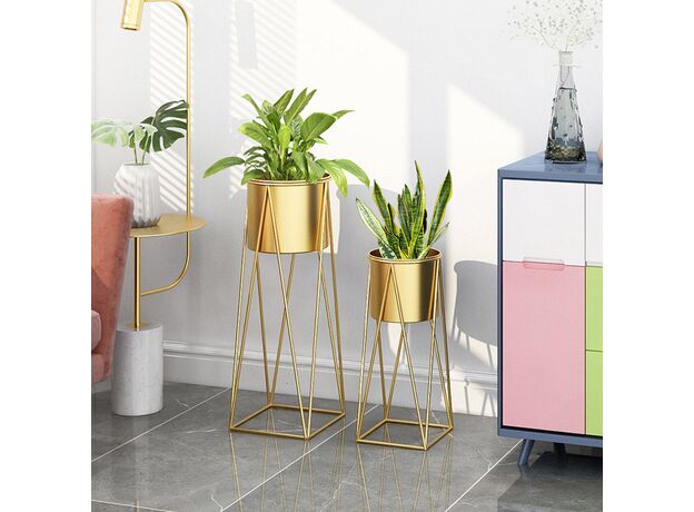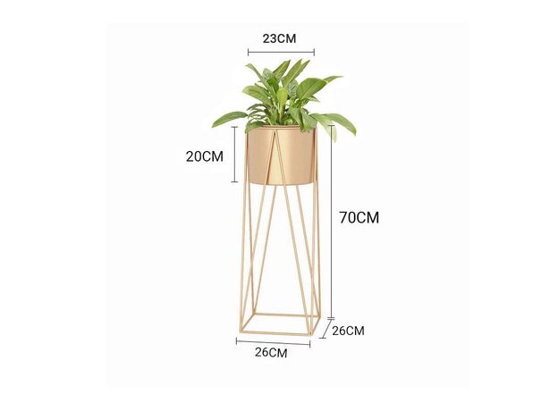 SOGA 70cm Gold Metal Plant Stand with Gold Flower Pot Holder Corner Shelving Rack Indoor Display