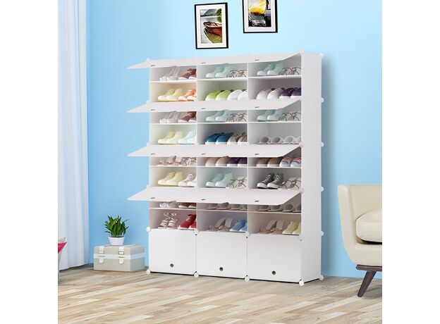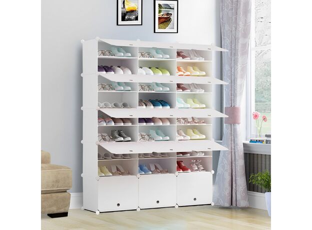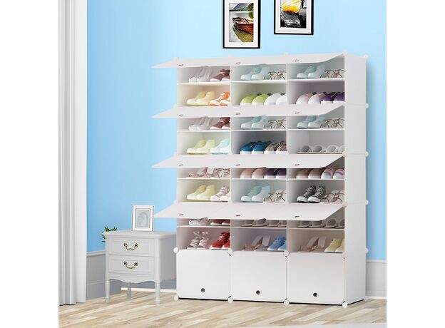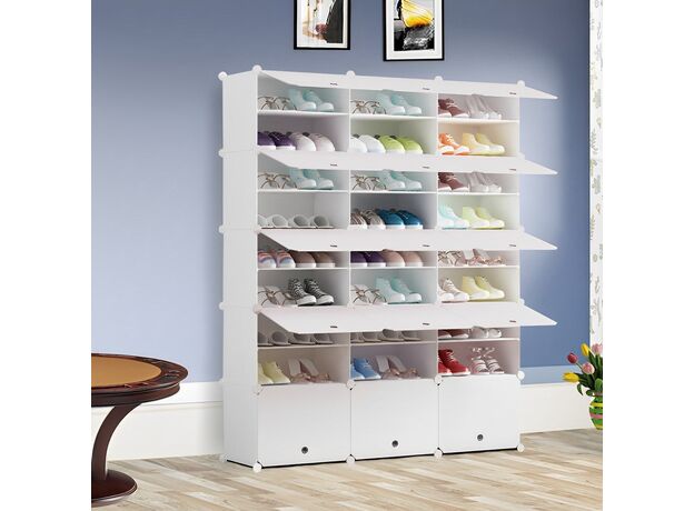 - 1X SOGA 9 Tier 3 Column White Shoe Rack Organizer