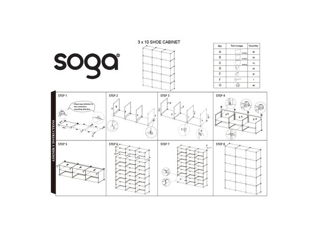 - DURABLE AND ECO-FRIENDLY MATERIAL: Constructed from heavy-duty and environmentally friendly PP plastic panels with iron wire connectors, the SOGA Shoe Organizer is durable, tough, and lightweight ensuring long-lasting performance.