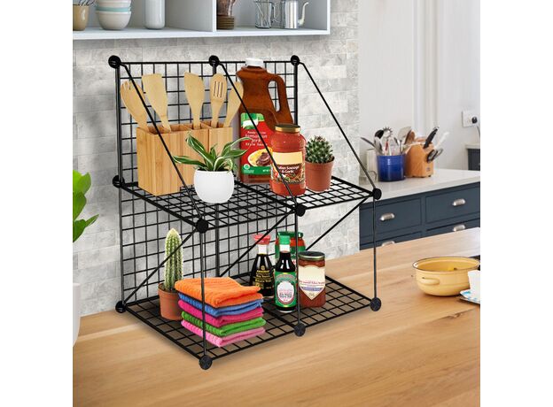 - 1X SOGA Black Portable 4-Cube 2 Tier Storage Organiser