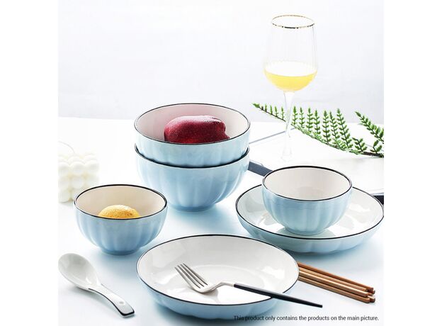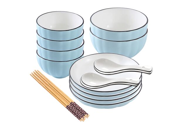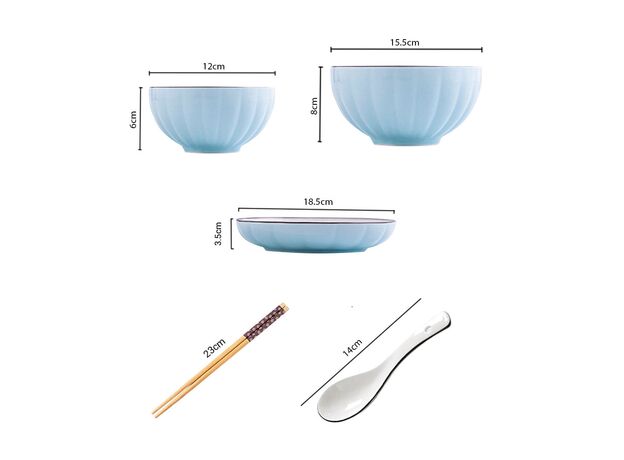 - 1X SOGA 10 pcs Blue Ceramic Dinnerware Set (4 Bowls, 4 Plates, 4 Spoons, 4 Pairs of Chopsticks, 2 Noodle Bowls)