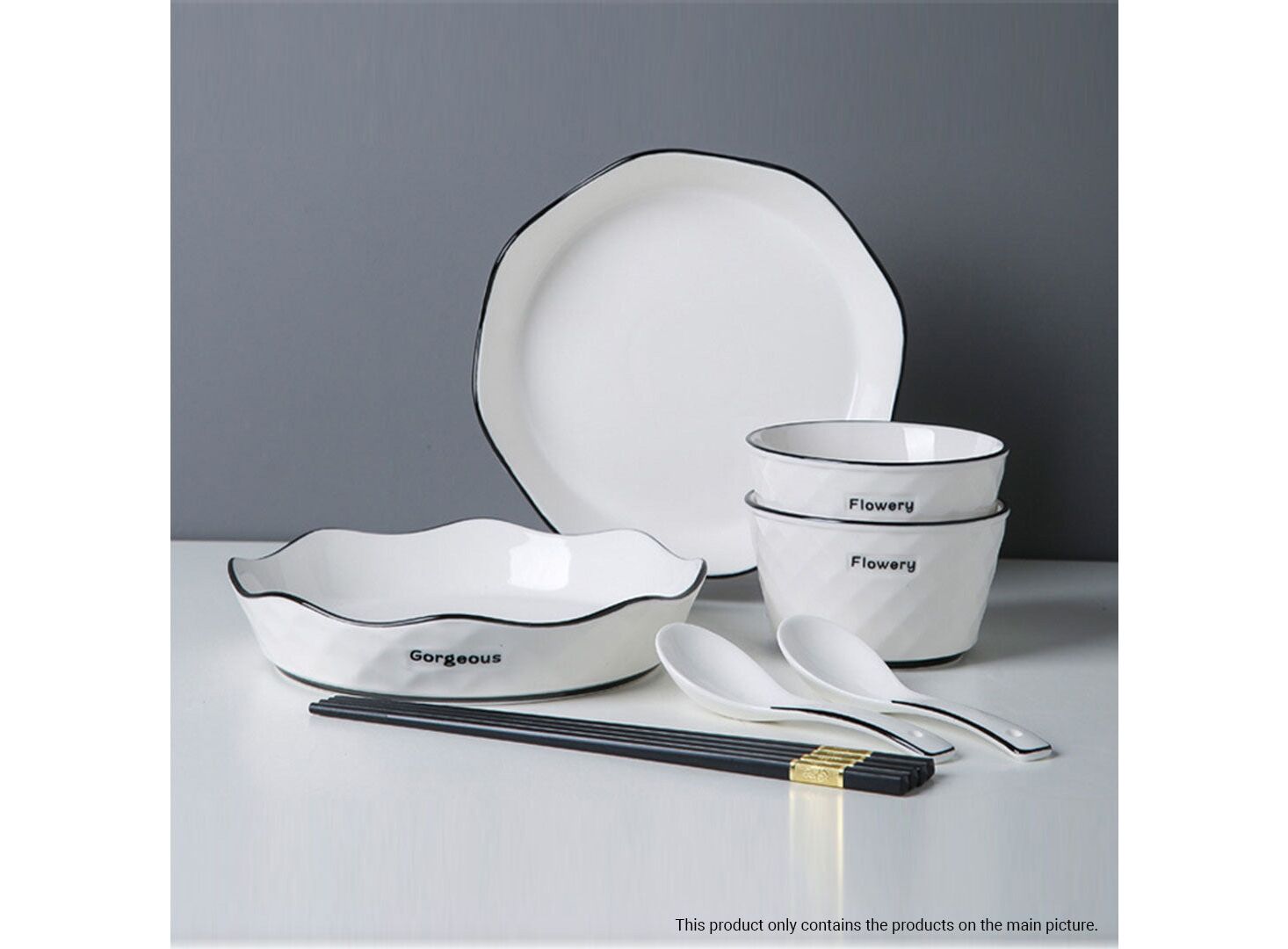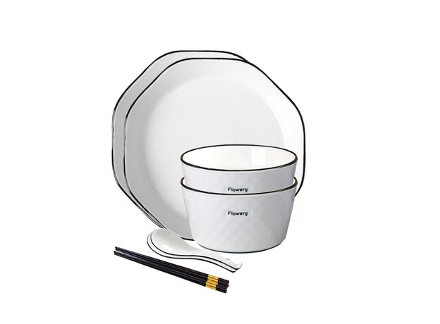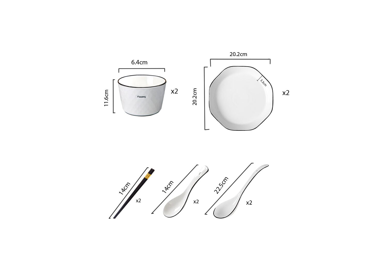 • 1X SOGA 4 pcs Diamond Pattern Ceramic Dinnerware Set (2 Bowls, 2 Plates, 2 Spoons, 2 Pairs of Chopsticks)