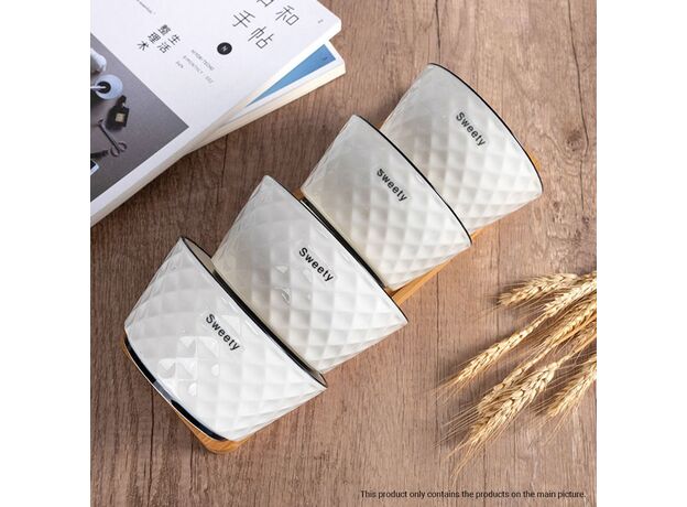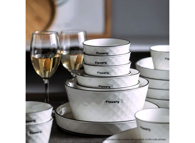SOGA Diamond Pattern Ceramic Dinnerware Set Crockery Soup Bowl Plate Server Kitchen Home Decor Set of 4