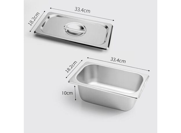 SOGA Gastronorm GN Pan Full Size 1/3 GN Pan 10cm Deep Stainless Steel Tray with Lid