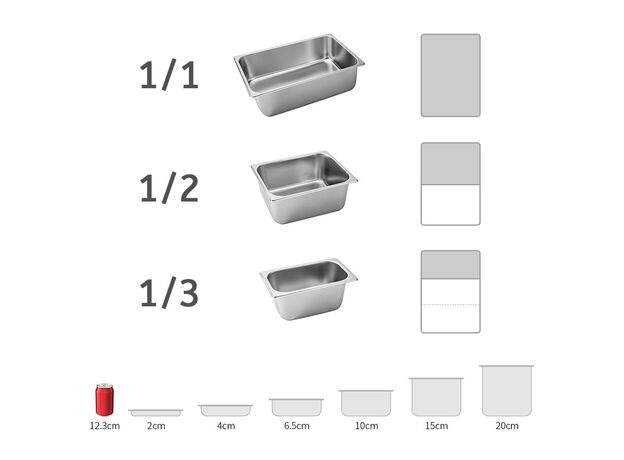 - SOGA Stainless Steel Gastronorm Pan is a standard size that fits into universal racks, heating elements, and walk-in coolers.