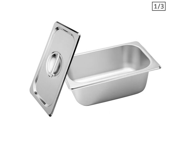 SOGA Gastronorm GN Pan Full Size 1/3 GN Pan 6.5 cm Deep Stainless Steel Tray with Lid