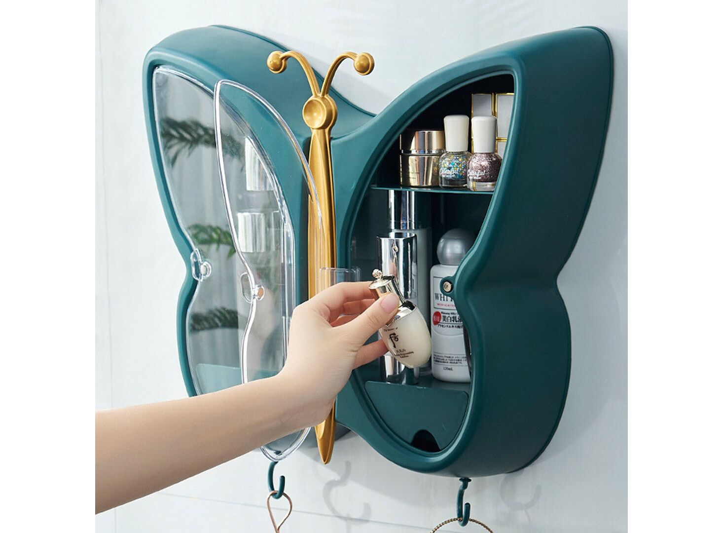 - Wondering how you can make your bathroom be organized in style? Good news, now you can take advantage of wall space for a clutter-free home by using our SOGA Butterfly Shape Wall-Mounted Makeup Organiser.