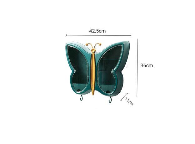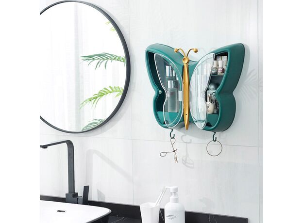 SOGA Green Butterfly Shape Wall-Mounted Makeup Organiser Dustproof Waterproof Bathroom Storage Box Home Decor