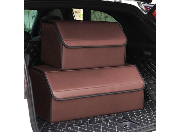 SOGA Leather Car Boot Collapsible Foldable Trunk Cargo Organizer Portable Storage Box Coffee Medium