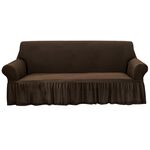 SOGA 3-Seater Coffee Sofa Cover with Ruffled Skirt Couch Protector High Stretch Lounge Slipcover Home Decor