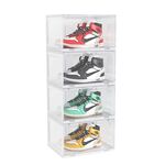 SOGA 4 Tier Transparent Portable Shoe Organiser Sneaker Footwear Folding Plastic Bin Stackable Storage Box with Magnetic Door