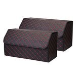 SOGA 2X Leather Car Boot Collapsible Foldable Trunk Cargo Organizer Portable Storage Box Black/Red Stitch Large
